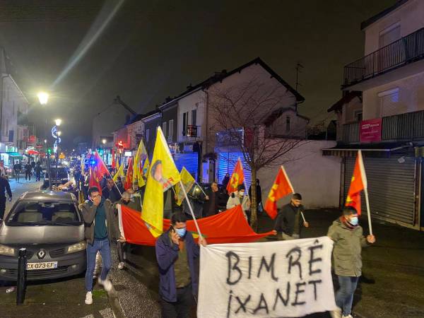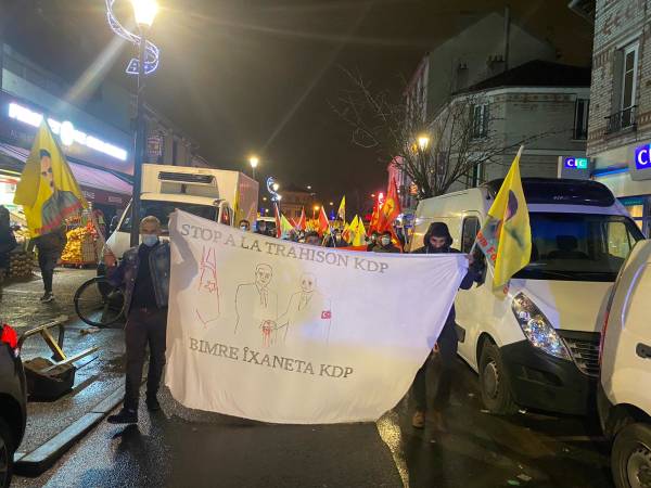 وخرج نشطاء الحركة في مظاهرة بضاحية فيليريس لا بيل التابعة للعاصمة الفرنسيّة باريس رافعين صور القائد أوجلان أعلام حزب العمّال الكردستاني PKK ولافتات مكتوب عليها عبارات مندّدة بجرائم الاحتلال التركي واصفين الهجمات التي شنّتها قوّات الحزب الديمقراطي الكردستاني PDK على مقاتلي الكريلا ب"الخيانة".