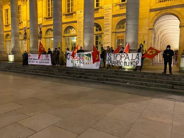 وفي مدينة بوردو الفرنسيّة، تجمّع نشطاء حركة الشبيبة الثوريّة في الساعة 18:30 أمام مبنى بلديّة المدينة رافعين لافتات مكتوب عليها عبارة "أوقفوا خيانة PDK"، كما ردّدوا هتافات تندّد بالتعاون بين الحزب الديمقراطي الكردستاني ودولة الاحتلال التركي.