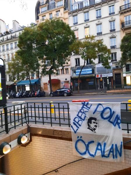 وعلّق النشطاء لافتات مكتوب عليها عبارات "الحرّية للقائد أوجلان" على أسوار المباني والحدائق العامّة، وذلك في مدن باريس، نورماندي، نيس وبوردو.