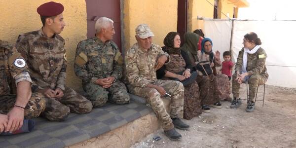 زارت مقاتلات وحدات حماية المرأة (YPJ)، ومقاتلو وحدات حماية الشعب (YPG)، قوات سوريا الديمقراطية (QSD)، المجلس العسكري، المجلس العسكري السرياني، الانضباط العسكري، وأعضاء واجب الدفاع الذاتي، ومجلس عوائل الشهداء، بمناسبة عيد الأضحى، مخيم مهجري سري كانيه الذين اضطروا إلى ترك ديارهم ومنازلهم قسراً بسبب هجمات دولة الاحتلال التركي ومرتزقته.